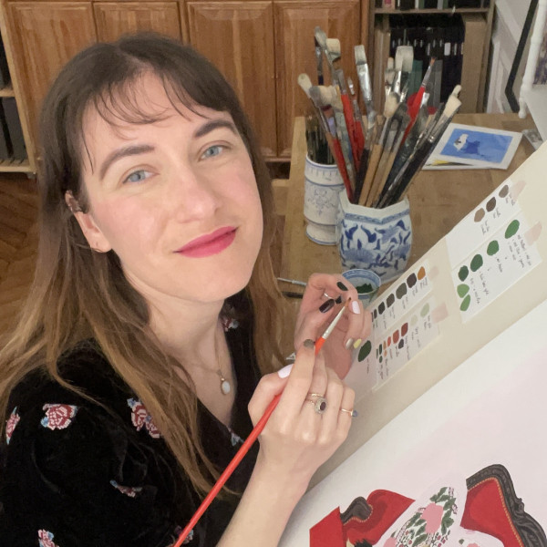 Née en 1991, Lil Sire s’est spécialisée dans l’illustration après cinq ans d’études aux écoles d’art Auguste Renoir et Olivier de Serre, une formation de joaillière et un passage par la Haute Couture. Représentée depuis 2020 par l’agence Pekelo, elle propose un univers graphique onirique et coloré, inspiré de courants artistiques variés tels que l’Art nouveau ou les estampes japonaises. Elle peint principalement à la gouache et vit à Paris.
